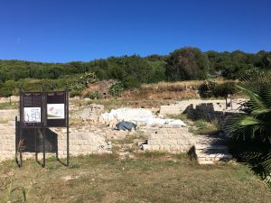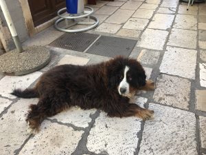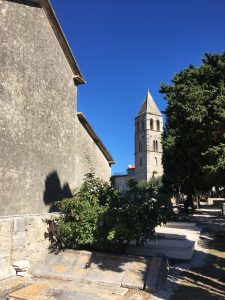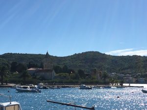 Vis ist ein kleines Städtchen, hat sogar eine römische Ausgrabung und die Kirche ist auf einem römischen Theater erbaut. Neben der Kirche ist ein Friedhof mit einem fantastischen Ausblick auf den Hafen. Und für mich ganz beruhigend – endlich wieder Kontakt mit Hunden. Sogar Mascarpone für unser Tiramisu haben wir im Supermarkt gefunden.