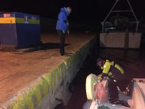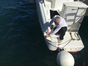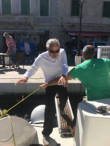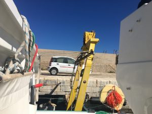 Die Herausforderung war es dann, von der feststehenden Hafenmauer wieder auf das schaukelnde Boot zu kommen.