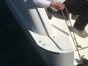 Wie es der Teufel haben will, ist uns dann noch eine Klampe abgerissen. Vor lauter Seegang!