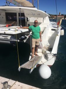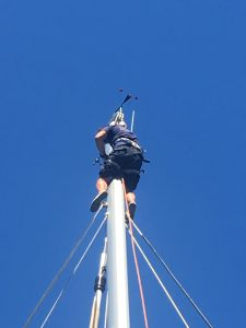 Wir warteten und warteten. Mit der ersten Fähre kam niemand. Mit der zweiten Fähre kam niemand. Anruf von uns an Ante – in 15 Minuten ist jemand bei uns. In Kroatien gehen die Uhren anders. 15 Minuten = 1 Stunde. Aber dann – hatten wir 2 hervorragende Jungs, die den Windmesser richteten.