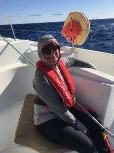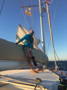 Trotzdem wir einen so stabilen Kat haben, ist es schwierig, bei diesen Wellengang zu kochen. Auch das Bücken wird zum Problem. Gott sei Dank gibt es Neo Emedyl Dragees. Aber ihr müsst nicht befürchten, dass die Crew hungert – Chefköchin Manu und Souschef Heidi zaubern auch bei ungünstigen Bedingungen hervorragende Gerichte.