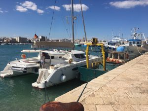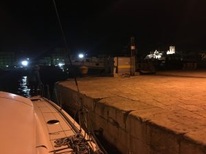 Um 1:00 legten wir dann in Mole die Bari zwischen den Fischerbooten und der Tankstelle steuerbordseitig an.