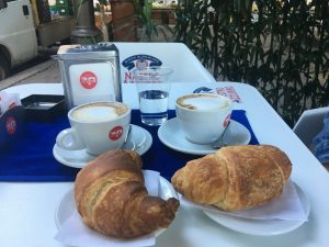 Manu und ich machten einen Spaziergang durch Mole die Bari. Ein absolut sauberes Städtchen – in der Kirche war ein Putztrupp von 6 Frauen, die Straßen wurden gefegt und sogar im Park der Rasen gemäht. In der Fischhalle kauften wir 1 kg frische Garnelen – 7 Euro.